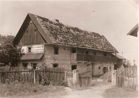 1944-Patrový statek (1815) Josefa Mejzra. Roubený patrový statek se zděnou hosp.částí. Do nádvorní strany domu byla směřována kratší pavlač s vyřezávanými sloupky, z níž se vstupovalo do dvou komor...