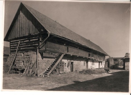 ...1944-Obytná patrová budova je roubená s omítnutým přízemím. Na hlavní obytnou místnost, světnici, navazuje přistavěný vejminek a zděné chlévy. Pavlač staršího typu, zpřístupňující komory-původně sušárny na chmel...
